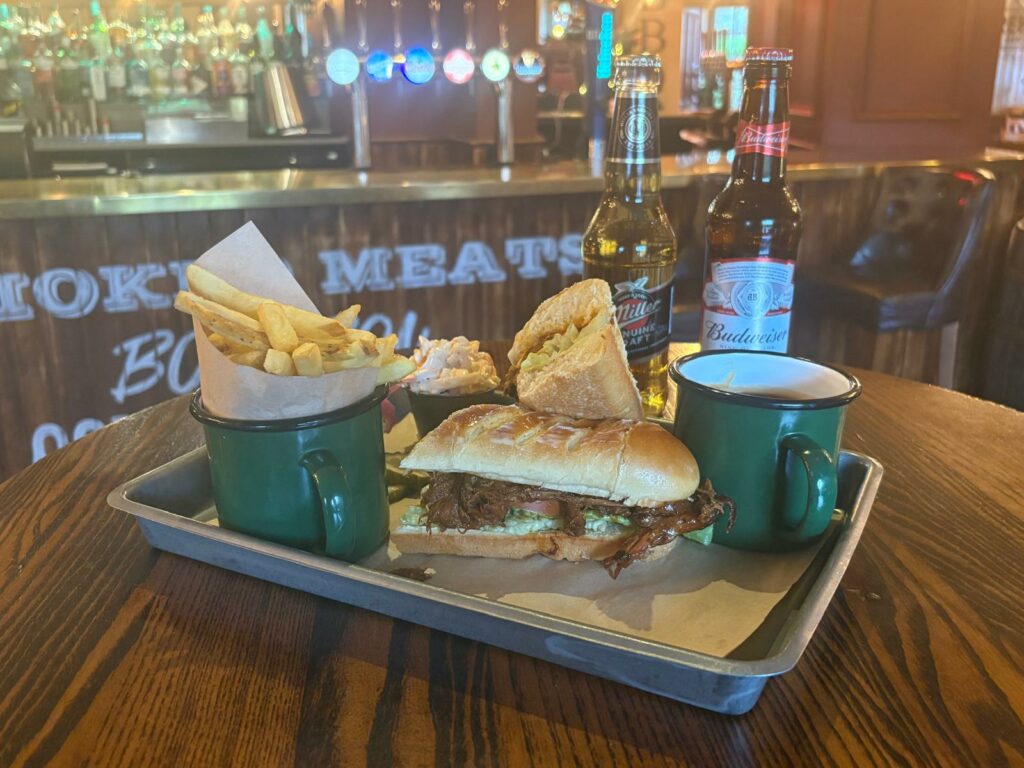 crispy lettuce, tomatoes and pickles served in a toasted brioche sub, fries, slaw and a pot of our signature BBQ gravy